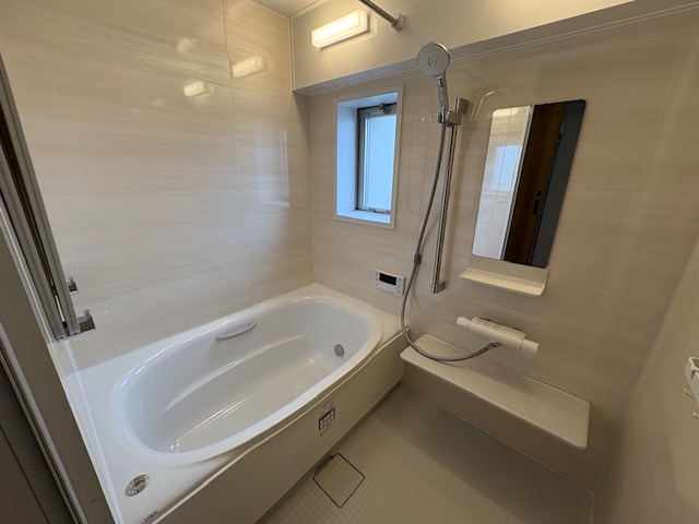 ・ユニットバス交換(浴室乾燥暖房機付、スライドバー水栓)・洗面台交換(タッチレス水栓)、洗濯パン新調、洗濯水栓交換・トイレ交換・全室内建具新調・シューズボックス新調・全室クロス貼替・和室→洋室に変更、CL新設、部屋配置変更・LDK、各洋室、廊下フローリング貼替・洗面脱衣室、トイレCF貼替・窓枠リアテックシート貼り・玄関タイル新調・玄関、トイレ間接照明設置・各所ダウンライト設置(人感・タイプあり)・ブレーカー交換・各所コンセント、スイッチ類交換・ハウスクリーニング他